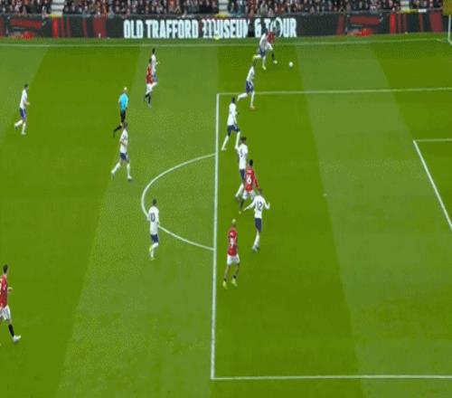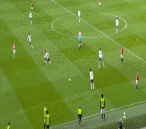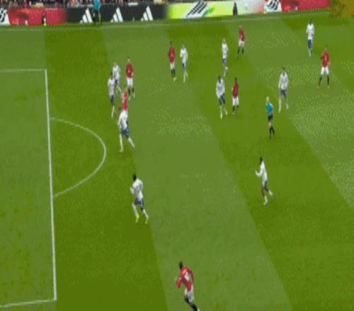 第38分鐘,曼聯(lián)球員B費(fèi)禁區(qū)前沿過頂長傳,達(dá)洛特右路插上,停球之后起腳勁射,皮球高出橫梁。