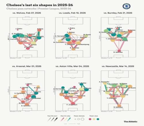 這一轉(zhuǎn)變幫助激發(fā)了最好的費(fèi)爾南德斯,他上賽季各項(xiàng)賽事貢獻(xiàn)8球14助攻,2025-26賽季至今已有12球6助攻。這也伴隨著帕爾默在進(jìn)攻三區(qū)的產(chǎn)出大幅下降。有理由相信這兩個(gè)趨勢是相關(guān)的,即使許多其他因素也導(dǎo)致切爾西十號位陷入困境。