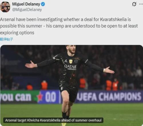獨立報記者MD消息,阿森納正探索今夏收購克瓦拉茨赫利亞,并且這名球星的陣營對這個可能性持開放態(tài)度,但巴黎可能會采取強硬態(tài)度。