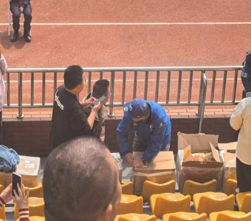 從現(xiàn)場(chǎng)照片來(lái)看,該球迷并沒(méi)有食言,他將數(shù)箱雞架搬到了比賽現(xiàn)場(chǎng)的看臺(tái)上,并將雞架免費(fèi)發(fā)放給現(xiàn)場(chǎng)觀賽的球迷。