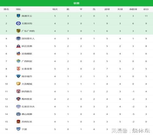 至此,雙方握手言和各拿1分。陜西聯(lián)合連續(xù)2輪不勝,目前總積分提升到4分,但目前仍少賽1場。南通支云客場拿到1分,總成績3勝2平保持不敗,積11分暫時仍排名榜首。如此一來,無錫吳鉤、廣州豹的機會來了,本輪若拿到3分就能超越南通支云。
