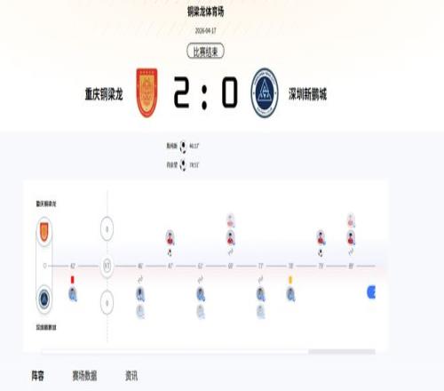 中超26賽季第六輪結(jié)束,本輪升班馬重慶銅梁龍坐鎮(zhèn)主場迎戰(zhàn)深圳新鵬城。最終在90分鐘常規(guī)比賽時(shí)間過后,銅梁龍2-0輕松擊敗新鵬城,成功捍衛(wèi)主場尊嚴(yán)。