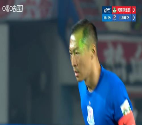 體育播報04月26日宣 中超第8輪,河南vs上海申花,比賽第39分鐘裁判判罰點球,吳曦主罰點球時,主場球迷用激光筆照射影響吳曦,但吳曦還是主罰命中。
