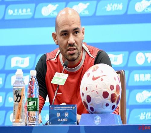 ▲成都蓉城隊(duì)員費(fèi)利佩出席賽前新聞發(fā)布會(huì)