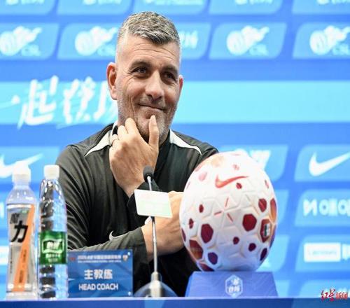 ▲成都蓉城主教練約翰·阿洛伊西出席賽前新聞發(fā)布會(huì)