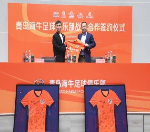 “3月4日,青島海牛足球俱樂(lè)部2026賽季出征儀式在城陽(yáng)區(qū)青春足球場(chǎng)圓滿舉行。2026賽季,青島海牛足球俱樂(lè)部將攜手青島本土品牌青島啤酒、青島飲料集團(tuán)、青島銀行、青島農(nóng)商銀行一同為這座城市的榮譽(yù)而戰(zhàn),出征儀式中,俱樂(lè)部與該4大品牌進(jìn)行了簽約儀式,攜手向前。活動(dòng)期間,新賽季球衣由部分球員展示,胸前廣告‘嶗山可樂(lè)’首次亮相。”