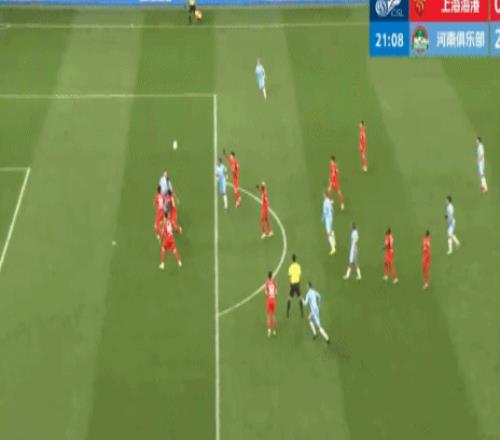 從慢鏡頭來看,在隊友頭球擺渡瞬間,兩名河南隊球員處于越位位置,但鐘義浩并沒有處于越位位置,至少兩名海港球員拖在了鐘義浩的身后。