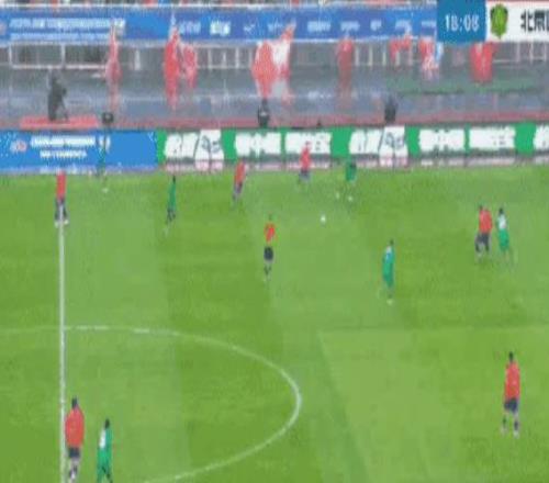 比賽打到第30分鐘,國(guó)安的快速反擊也起效了:張玉寧中路打門踢偏。