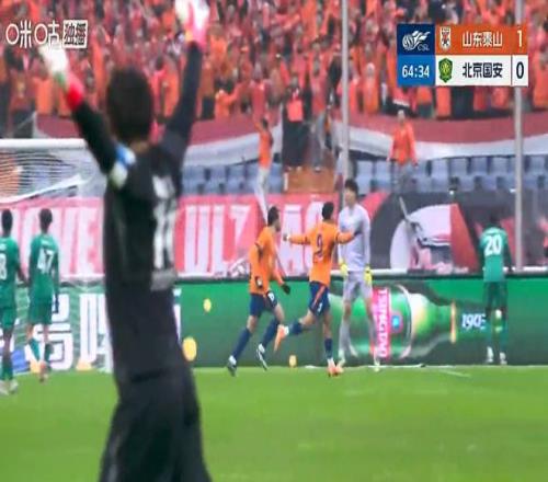第49分鐘,山東泰山先破門(mén),謝文能的小角度怒射進(jìn)球打破場(chǎng)上僵局。之后北京國(guó)安不斷反撲都沒(méi)能進(jìn)球。比賽踢到第86分鐘時(shí)北京國(guó)安那邊也收獲喜悅了!張玉寧趁慌亂中在禁區(qū)門(mén)前搶點(diǎn)捅射,把球蹭進(jìn)山東泰山球門(mén)。1比1,客場(chǎng)把比分追平。然后才高興不到1分鐘,山東泰山那邊立即還以顏色,克雷桑接到任意球后頭球一甩,張健智撲球來(lái)不及,眼睜睜地看著皮球滾進(jìn)自家球門(mén)。