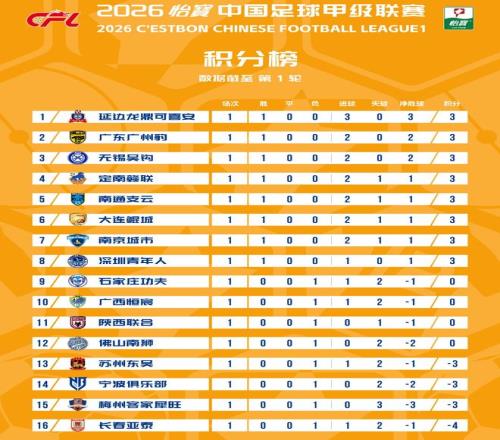 需要說明的是,長春亞泰、梅州客家分別是-4分、-3分開局,這無疑讓他們雪上加霜。另外2支負分開局的球隊寧波隊、蘇州東吳,首輪也告負。其中,寧波隊在揭幕戰(zhàn)中客場0-2完敗沖超熱門廣東廣州豹,蘇州東吳則主場1-2不敵遠道而來的大連鯤城。他們的積分也都停留在-3分。