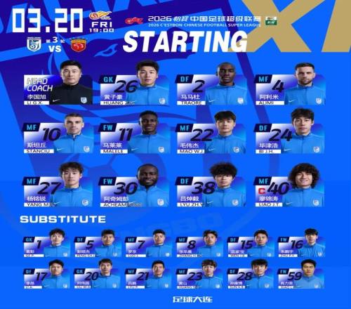 在遭遇兩連敗后,李國旭對首發(fā)陣容再次做出調(diào)整,廖錦濤擔(dān)任隊(duì)長,黃子豪任門將,馬馬杜、阿利米、斯坦丘、馬萊萊、毛偉杰、畢津浩、楊銘銳、阿奇姆彭、呂焯毅首發(fā)登場。