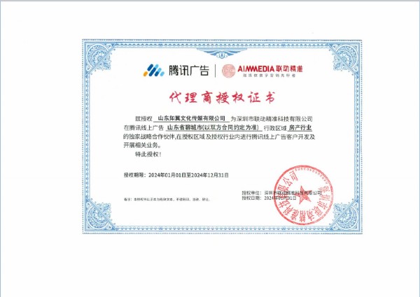 附件:1. 騰訊廣告區域及行業服務商授牌證書