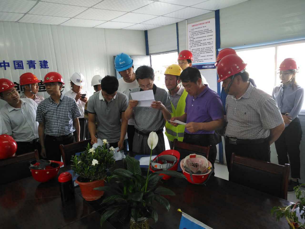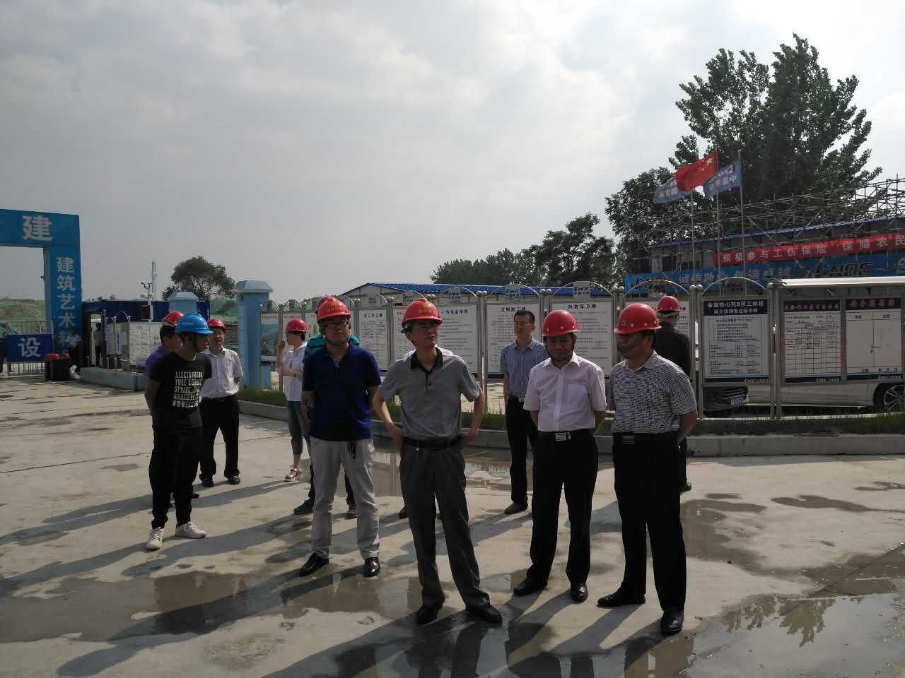 5月23日下午,省人社廳、省住建廳、省安監局和省總工會組成的聯合督察組指導參觀財金公司“陳屯棚改項目”,同時對陳屯棚戶區B區項目進行工傷保險參保及安全生產情況進行檢查。