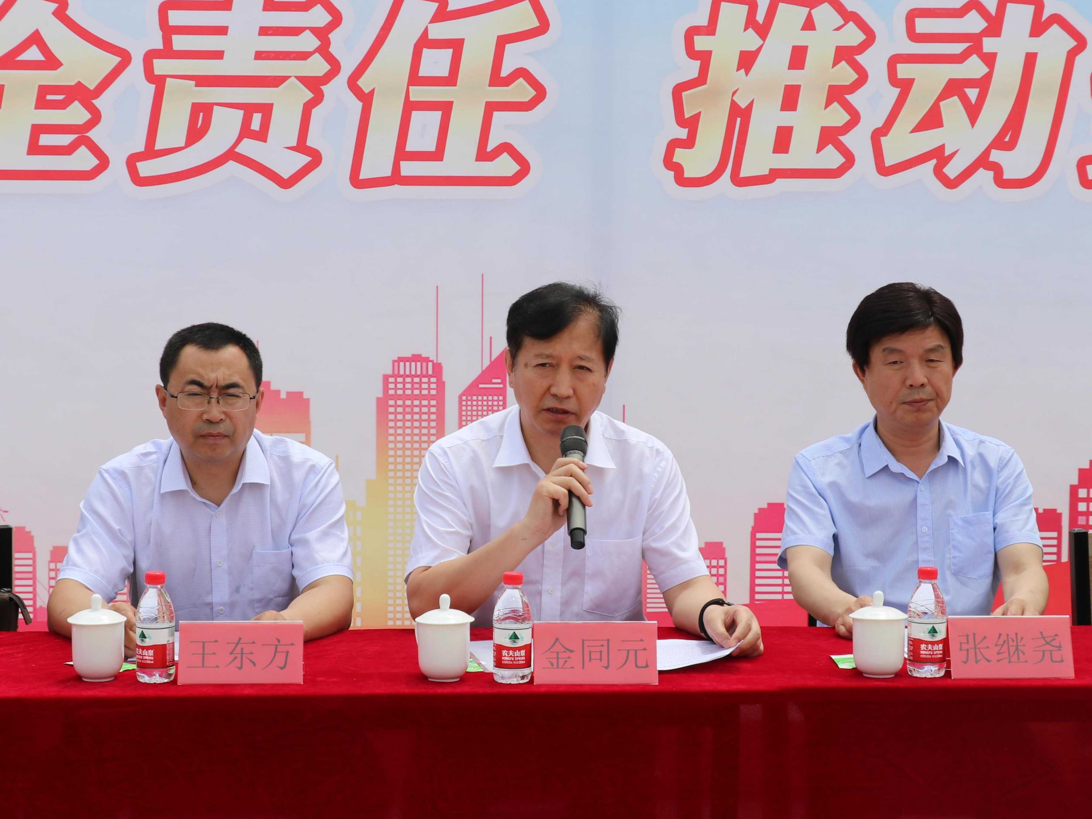 今年6月是第20個全國“安全生產(chǎn)月”,為深入貫徹落實(shí)習(xí)近平總書記關(guān)于安全生產(chǎn)重要論述,扎實(shí)推進(jìn)全國安全生產(chǎn)專項(xiàng)整治三年行動集中攻堅(jiān),結(jié)合安全生產(chǎn)月活動安排,6月19日,以“落實(shí)安全責(zé)任,推動安全發(fā)展”為主題,在財(cái)金公司承擔(dān)的市重點(diǎn)建設(shè)項(xiàng)目—新舊動能轉(zhuǎn)換產(chǎn)業(yè)孵化園組織開展應(yīng)急救援演練活動。市國資委黨委書記、主任金同元,市應(yīng)急管理局黨委副書記、副局長王東方,市國資委二級調(diào)研員劉娟,市消防支隊(duì)督查辦主任杜春華,財(cái)金公司全體班子成員觀看了演練。