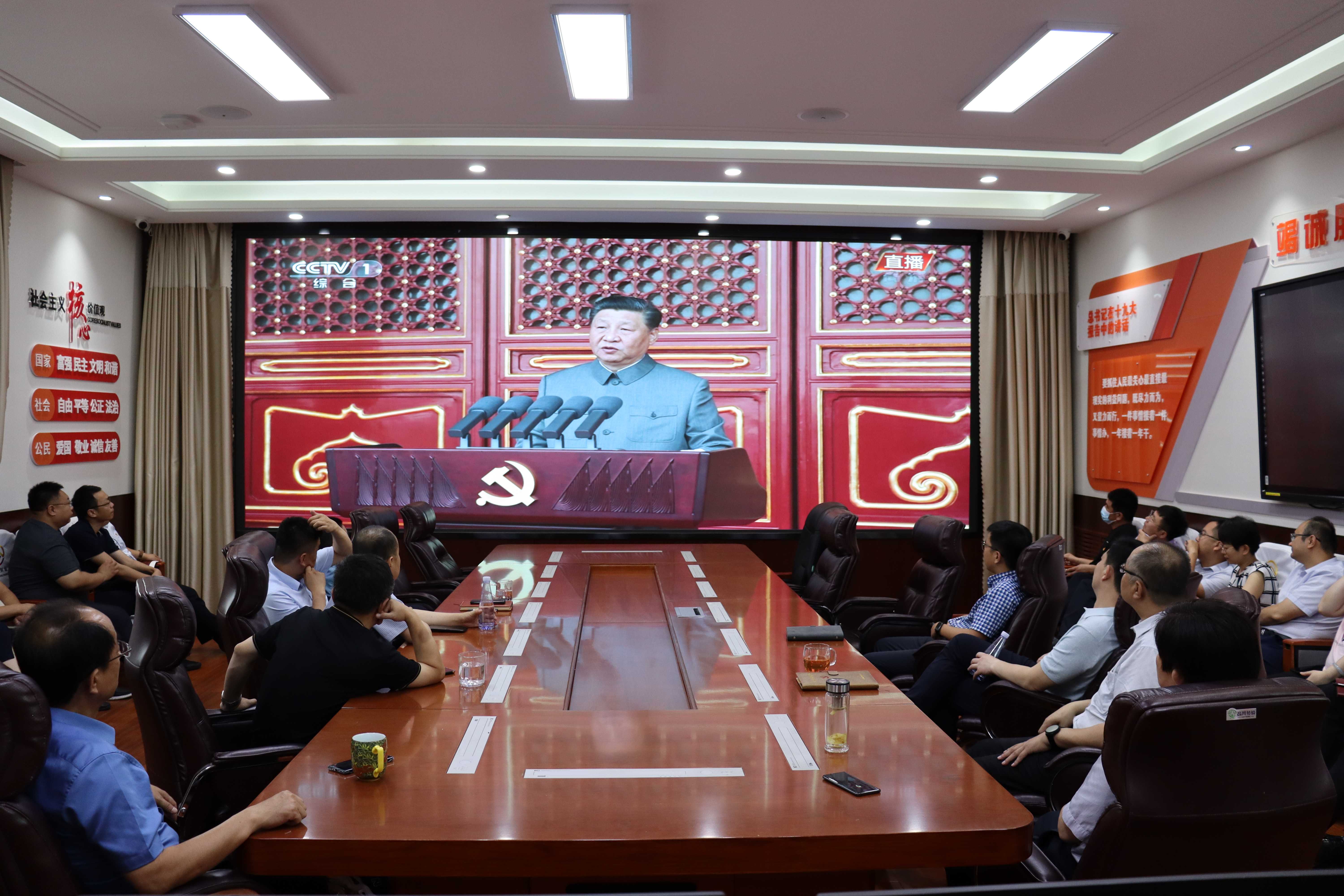 7月1日上午8時,慶祝中國共產黨成立100周年大會在北京天安門廣場隆重舉行,中共中央總書記、國家主席、中央軍委主席習近平發表重要講話。市財金公司及各子公司組織干部職工集中觀看大會直播。