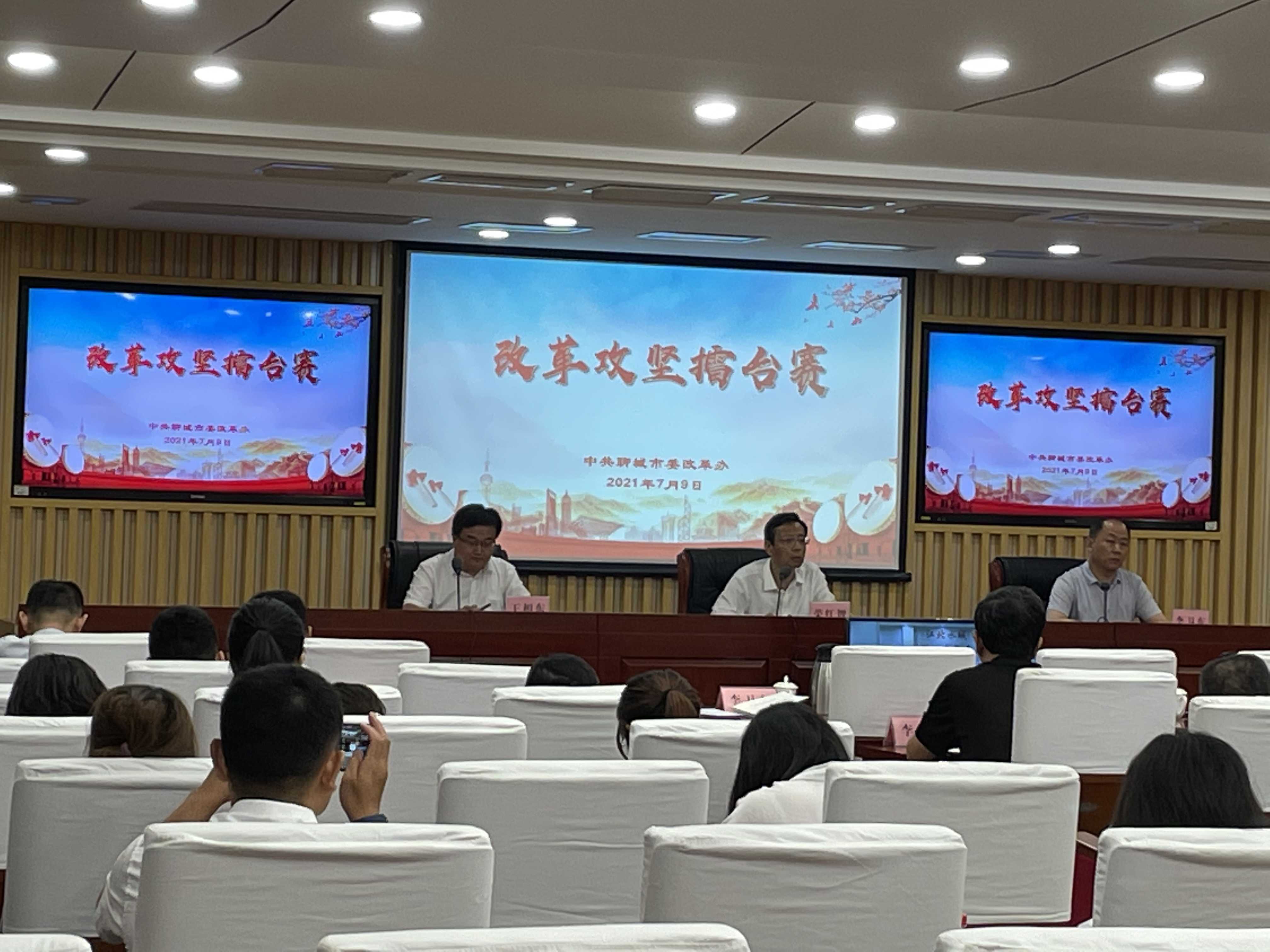 7月9日下午,中共聊城市委改革辦開展了“改革攻堅擂臺賽”,在全市68個改革創(chuàng)新案例中選取10個典型案例匯報展示。市委常委、秘書長、改革辦主任榮紅智,省委改革辦主任李衛(wèi)東,聊城市委副秘書長、政研室主任、改革辦副主任王相東,市國資委黨委委員、副主任李樹新及市直有關(guān)部門分管負責(zé)同志參會,各縣(市、區(qū))設(shè)視頻分會場。