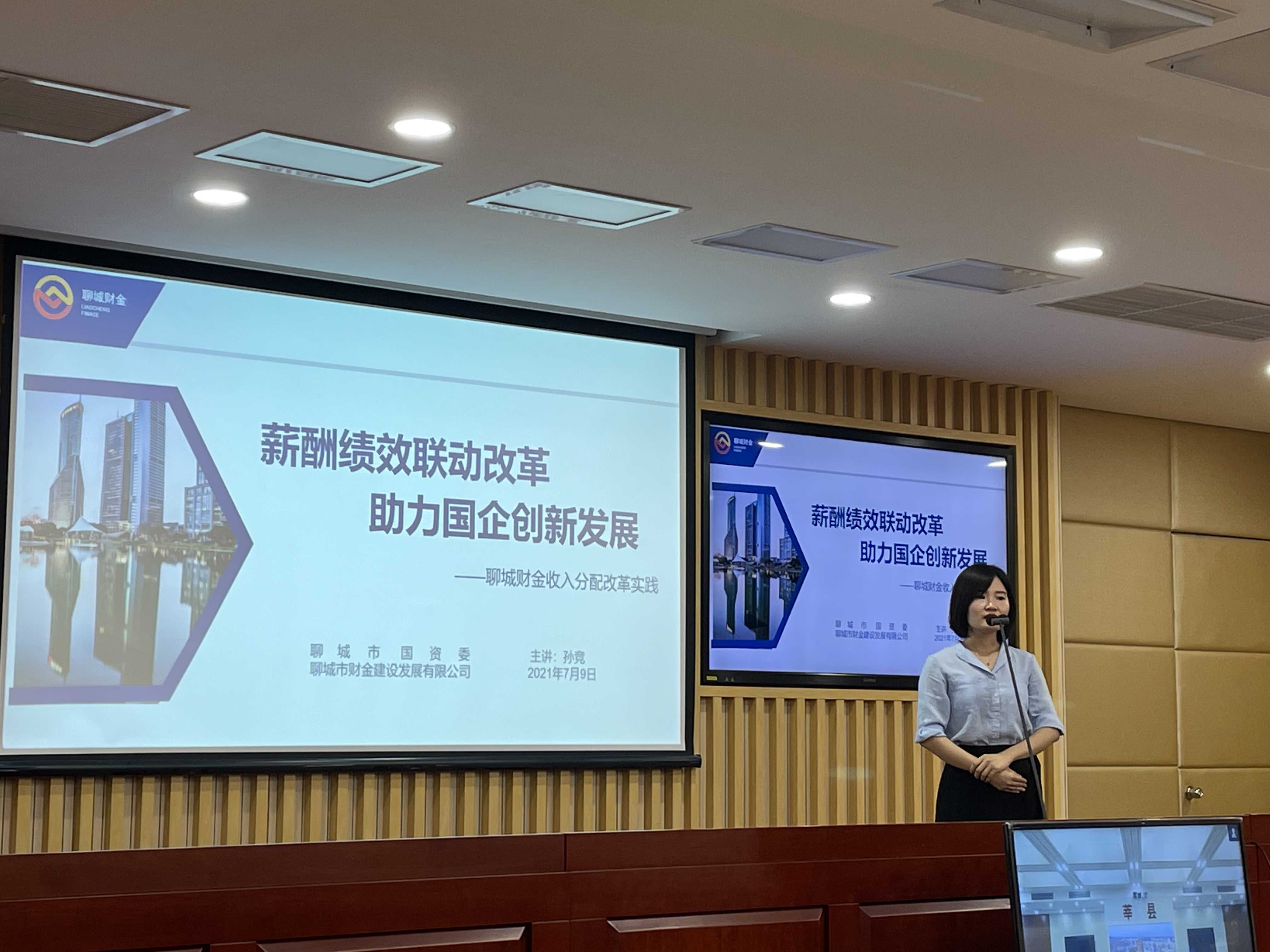 此次擂臺賽由公司總經(jīng)理助理孫競現(xiàn)場分享案例《薪酬績效聯(lián)動改革,助力國企創(chuàng)新發(fā)展—聊城財金收入分配改革實踐》,就薪酬績效聯(lián)動改革的背景、內(nèi)容及效果作了重點匯報展示。匯報中指出,財金公司以三項制度改革為深化國有企業(yè)改革的突破口,按照“不斷強化激勵導(dǎo)向,破除平均主義”的總體方向,以“體現(xiàn)差異、業(yè)績聯(lián)動、高效激勵”為原則,實行“兩級考核,兩級管理”,堅持按績?nèi)〕辍徸冃阶儯?zhàn)略導(dǎo)向的市場化薪酬績效聯(lián)動體系,激發(fā)企業(yè)內(nèi)生動力,為轉(zhuǎn)型升級、改革發(fā)展提供堅實的機制保障。
