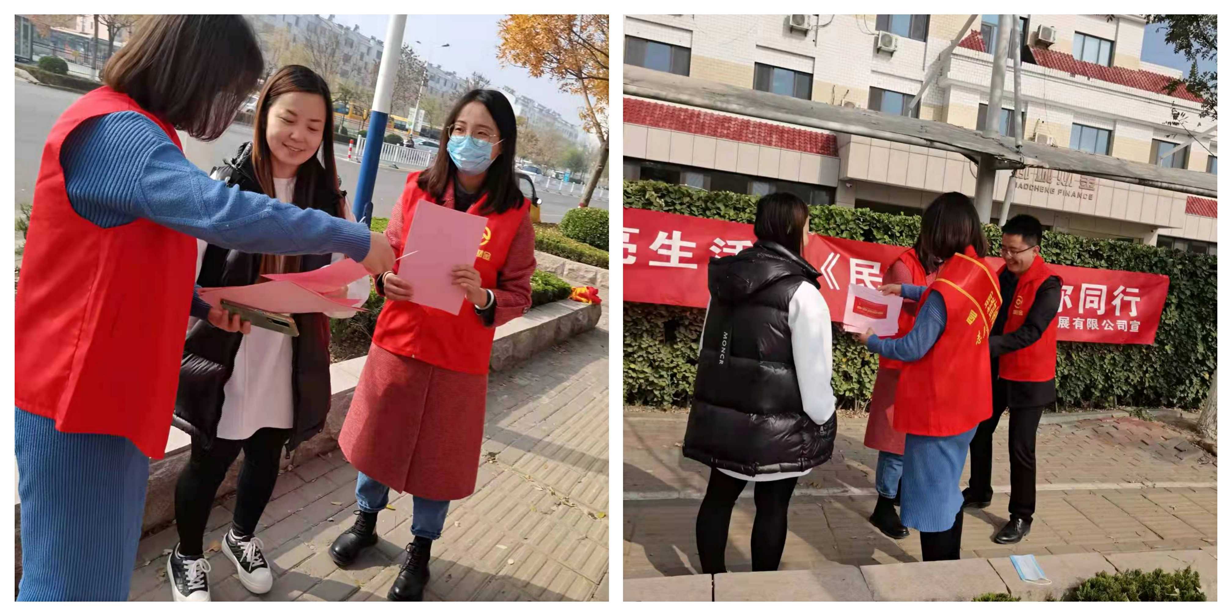《民法典》作為“社會生活的百科全書”,是民事權(quán)利的宣言書和保障書。財金公司身體力行,主動投入到普法宣傳的志愿服務(wù)活動中。通過向過往市民群眾發(fā)放宣傳單頁,積極向大家解讀民法典一系列新規(guī)定新概念新精神,耐心回答路人提出的相關(guān)法律問題等,做到了宣傳民法典、弘揚民法典,營造了濃厚的《民法典》學(xué)習(xí)、宣傳氛圍。