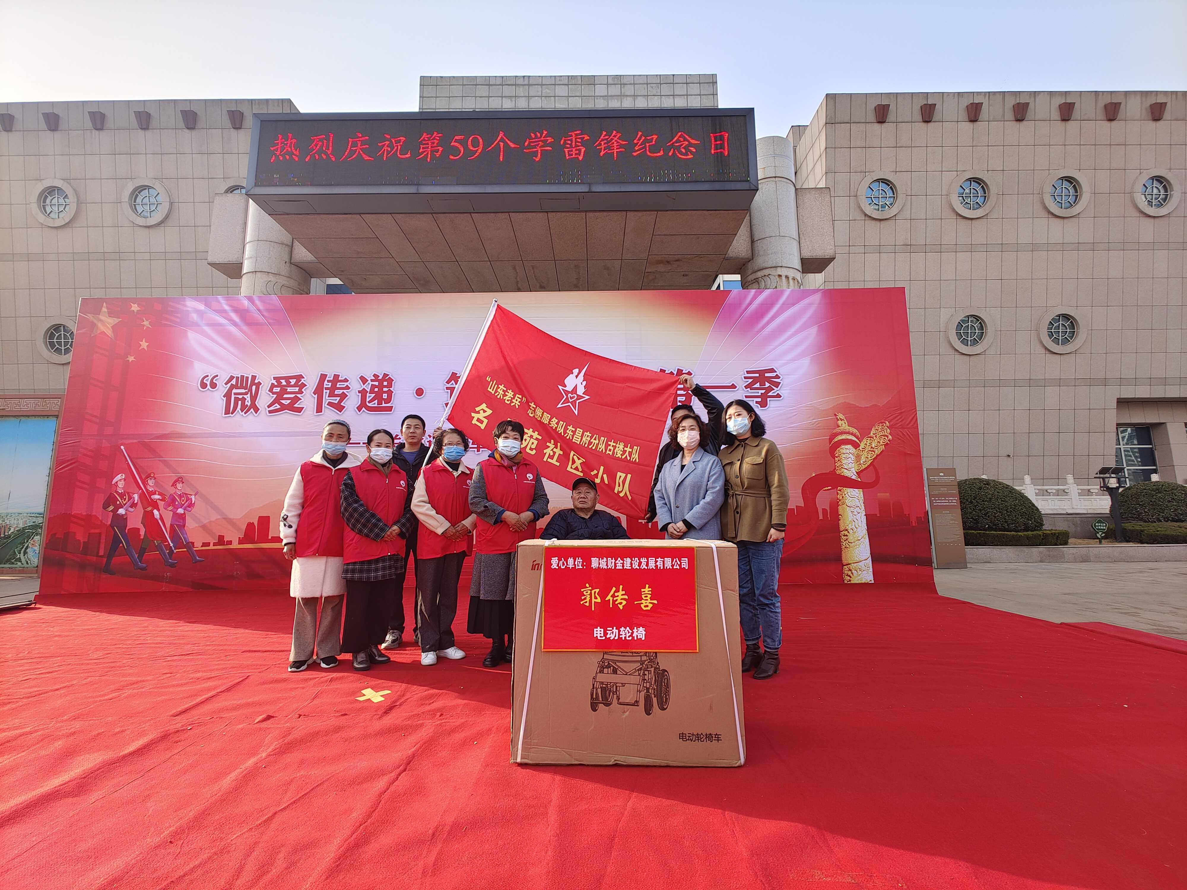 一份愛心,勝過千言萬語;一點捐贈,弘揚人間大愛。3月8日,市財金公司干部職工積極參加由東昌府區退役軍人事務局、古樓街道辦事處聯合主辦的第一季“微愛傳遞·筑夢飛翔”——關愛退役軍人公益活動,并捐贈電動輪椅一輛。