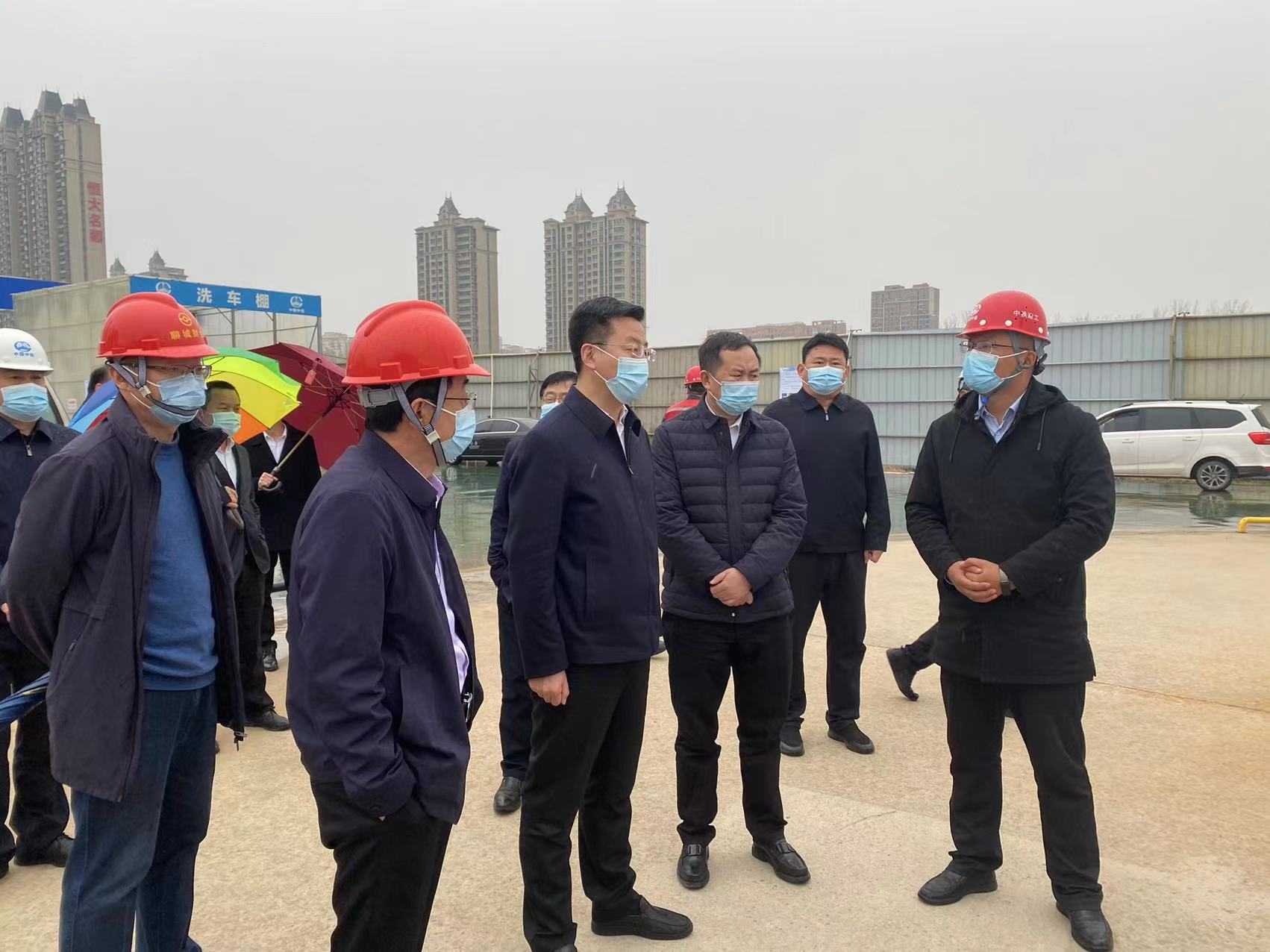 3月16日下午,市委常委、副市長王峰,市政府辦公室副主任張吉會,市住房和城鄉建設局局長張亞一行來到聊城市新舊動能轉換產業孵化園區項目(一期)現場,調研項目進展情況及安全生產工作。市財金公司黨委副書記、董事、總經理于雪格及泰岳公司相關人員陪同。