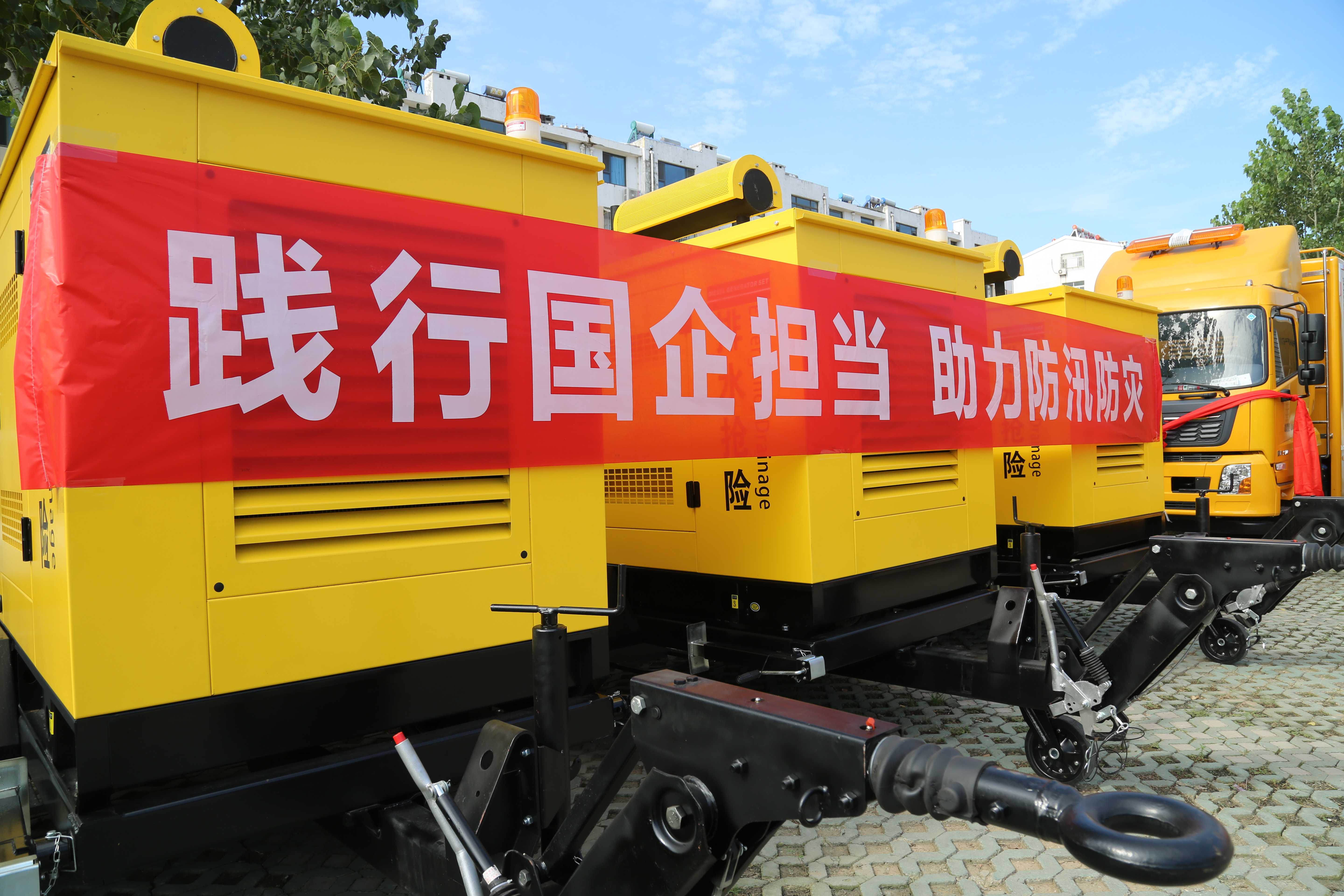 儀式現場,整齊排放著13輛各式各樣的防汛車輛,包括3輛5000m3/h排量、2輛3000m3/h排量的防汛強排車,3輛1000m3/h排量、3輛550m3/h排量、2輛360m3/h排量的拖掛式防汛強排泵,能夠滿足城區多種環境下的防汛工作。車輛廠商人員詳細介紹了車輛的基本情況,并進行了車輛內部展示。隨后,王躍將“車輛鑰匙”遞交到市城管局靖鵬程手中,宣告車輛正式交付使用。
