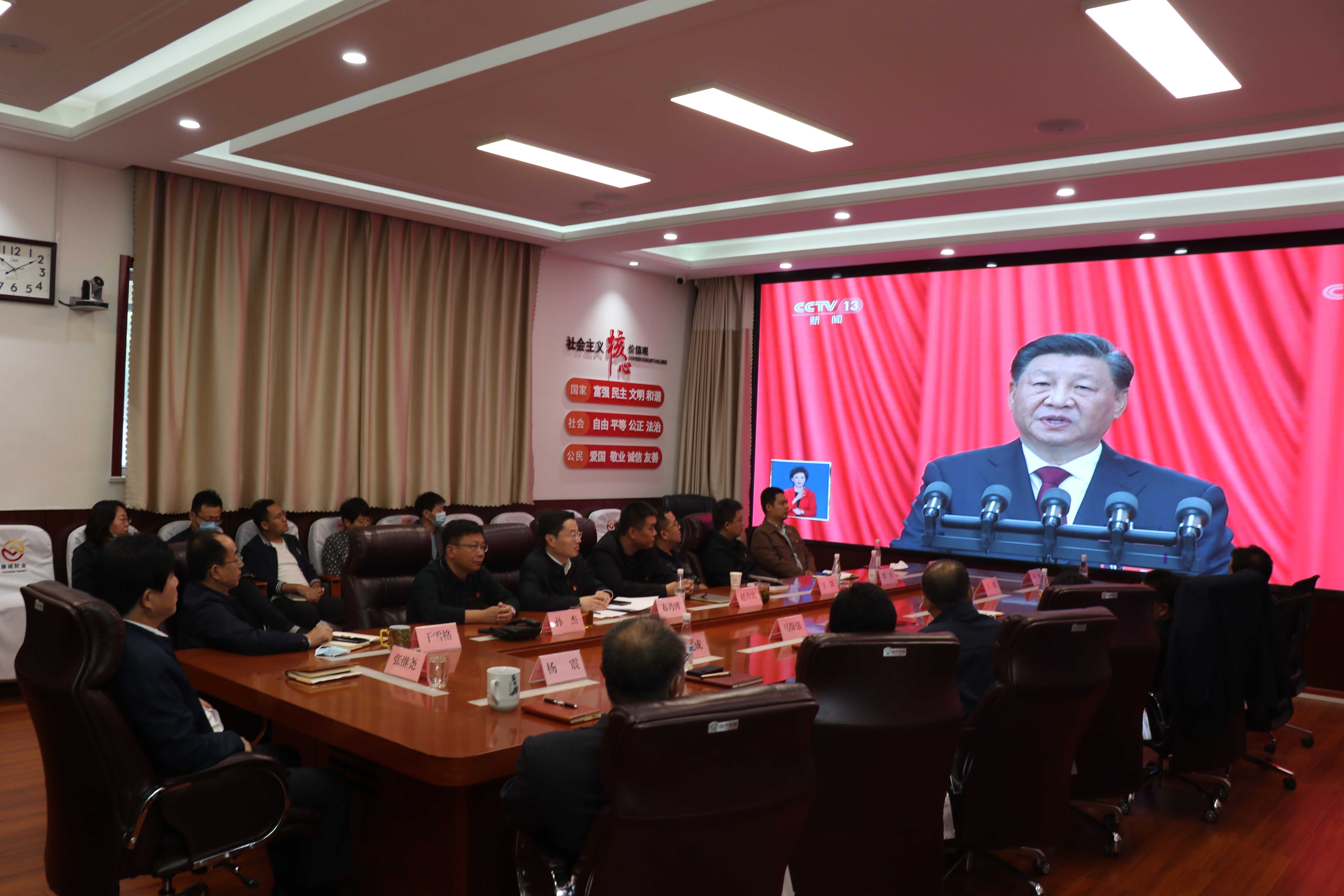 財金集團組織全體干部職工收聽收看中國共產黨第二十次全國代表大會開幕式現場盛況直播,認真聆聽習近平總書記代表第十九屆中央委員會向大會所作的工作報告。