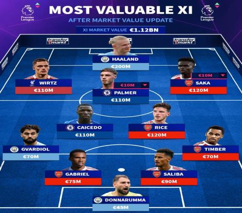 德轉(zhuǎn)更新后英超最貴11人陣容:哈蘭德2億歐領(lǐng)銜,6人身價(jià)過億