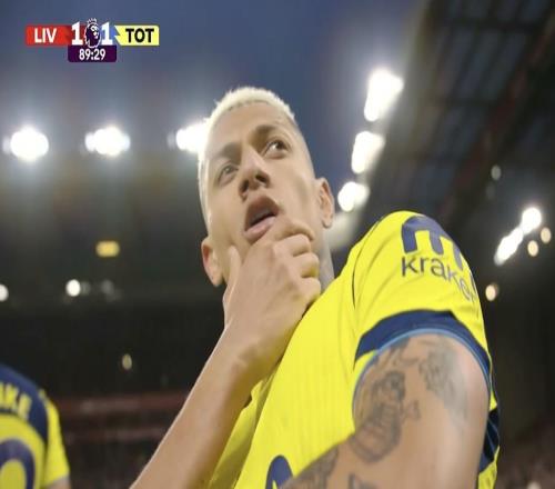 英超第30輪,熱刺客場對陣利物浦,比賽尾聲階段,里沙利松破門為熱刺扳平比分,至此,里沙利松英超生涯對陣利物浦已打...