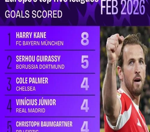 據(jù)Squawka統(tǒng)計,拜仁中鋒哈里-凱恩在2月的德甲聯(lián)賽中打入8球,高居五大聯(lián)賽射手榜之首。多特前鋒吉拉西打入5球,...