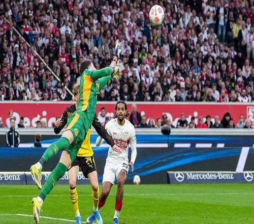 北京時(shí)間4月5日,德甲第28輪,多特客場挑戰(zhàn)斯圖加特。比賽中。圖源:視覺中國上半場兩隊(duì)?wèi)?zhàn)成0-0,下半場補(bǔ)時(shí)階段,阿...