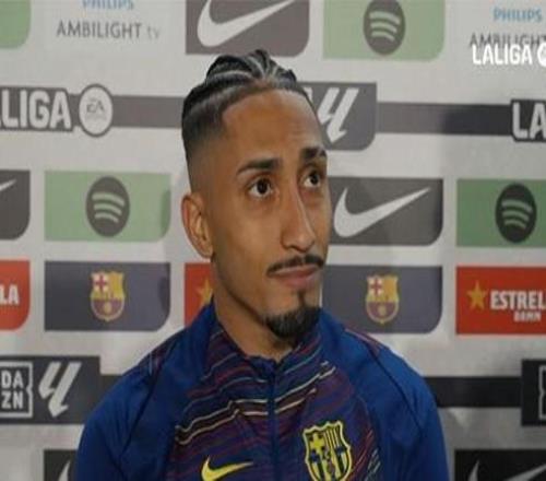 用帽子戲法幫助球隊在聯賽主場5-2大勝塞維利亞后,巴薩前鋒拉菲尼亞當選全場最佳,賽后他接受了DAZN的采訪。球...