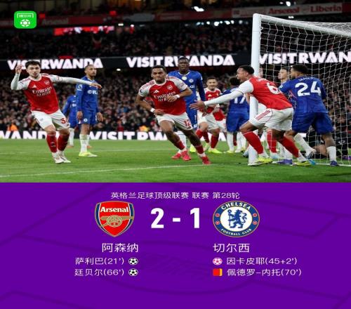 劍南春阿森納21切爾西,薩利巴、廷貝爾破門(mén),內(nèi)托染紅