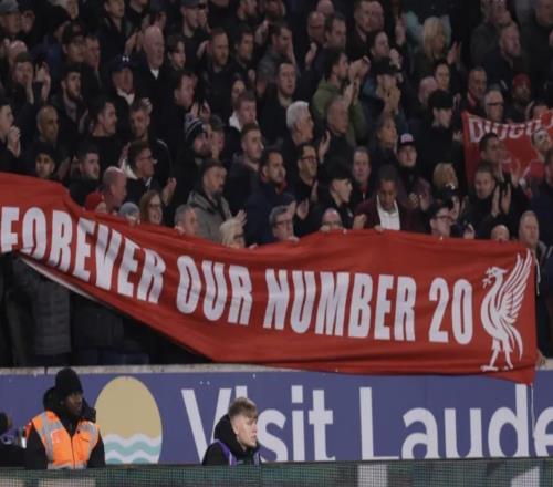 紀(jì)念若塔,狼隊、紅軍球迷在比賽第18分鐘和第20分鐘發(fā)出呼聲