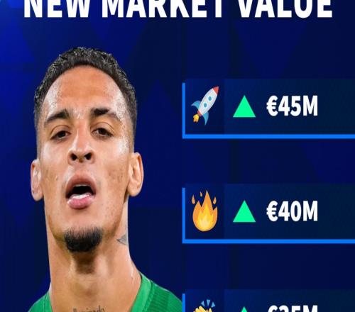德轉(zhuǎn)預(yù)熱安東尼身價(jià)上漲:最低上漲至3200萬歐,最高4500萬歐