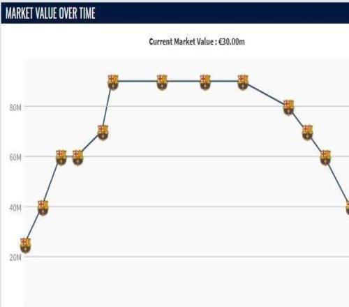 北京時間3月16日,德國轉(zhuǎn)會市場更新了西甲球員的最新身價,其中加維的身價下跌1000萬歐元,來到了3000萬歐元。加...